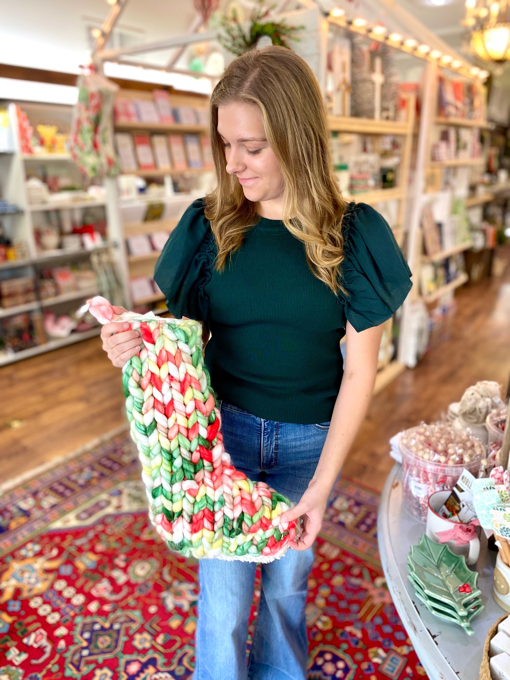 Hand Woven Acrylic Knit Stocking with Sherpa Back Multi