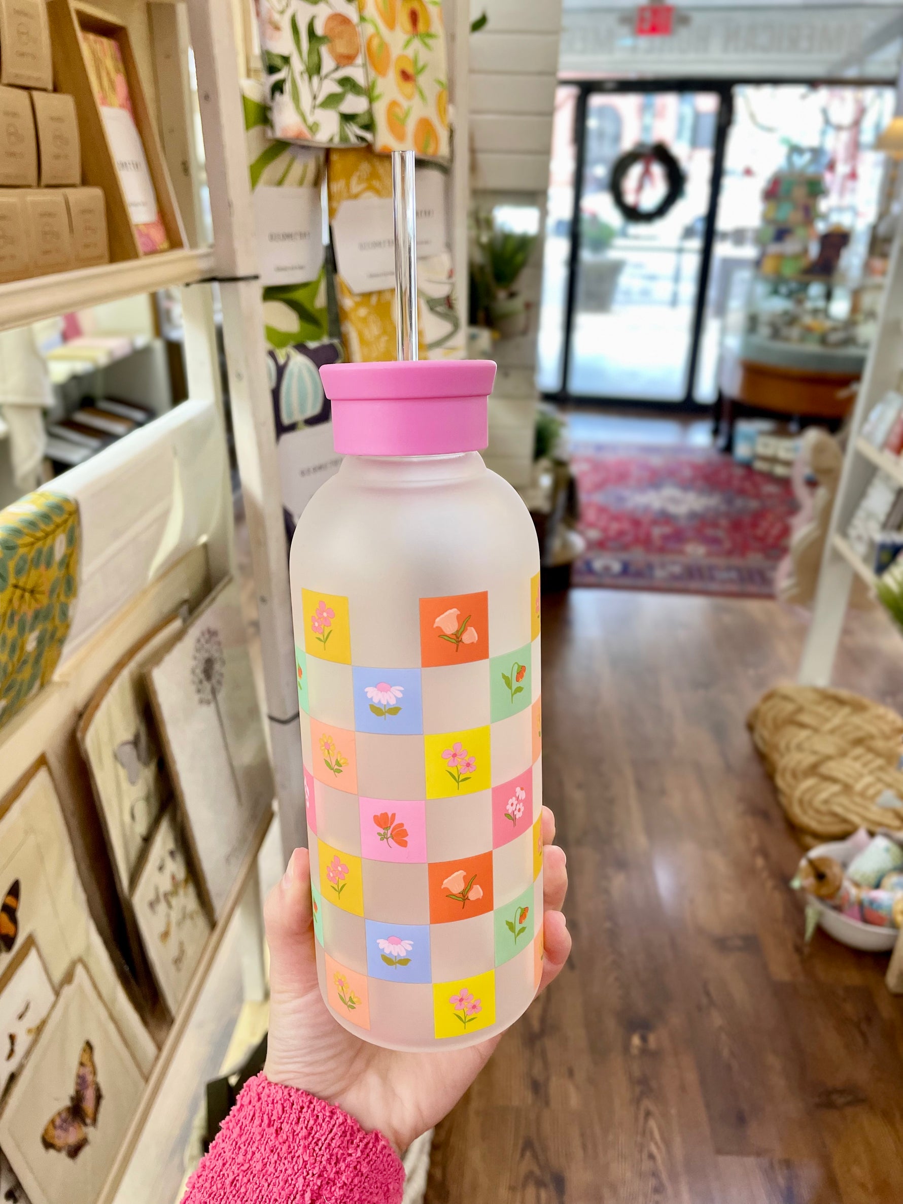 Water Bottle Checkerboard Blooms