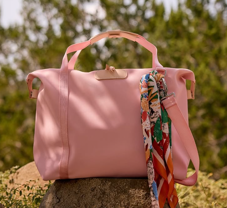 Webbing handles and detachable crossbody strap with Natural Leather detail