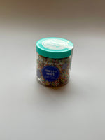 Refreshingly sweet gummy drops in a dazzling coating of rainbow nonpareils. Like a confetti popper in candy form, these colorful gummy drops are the perfect addition to celebrations!