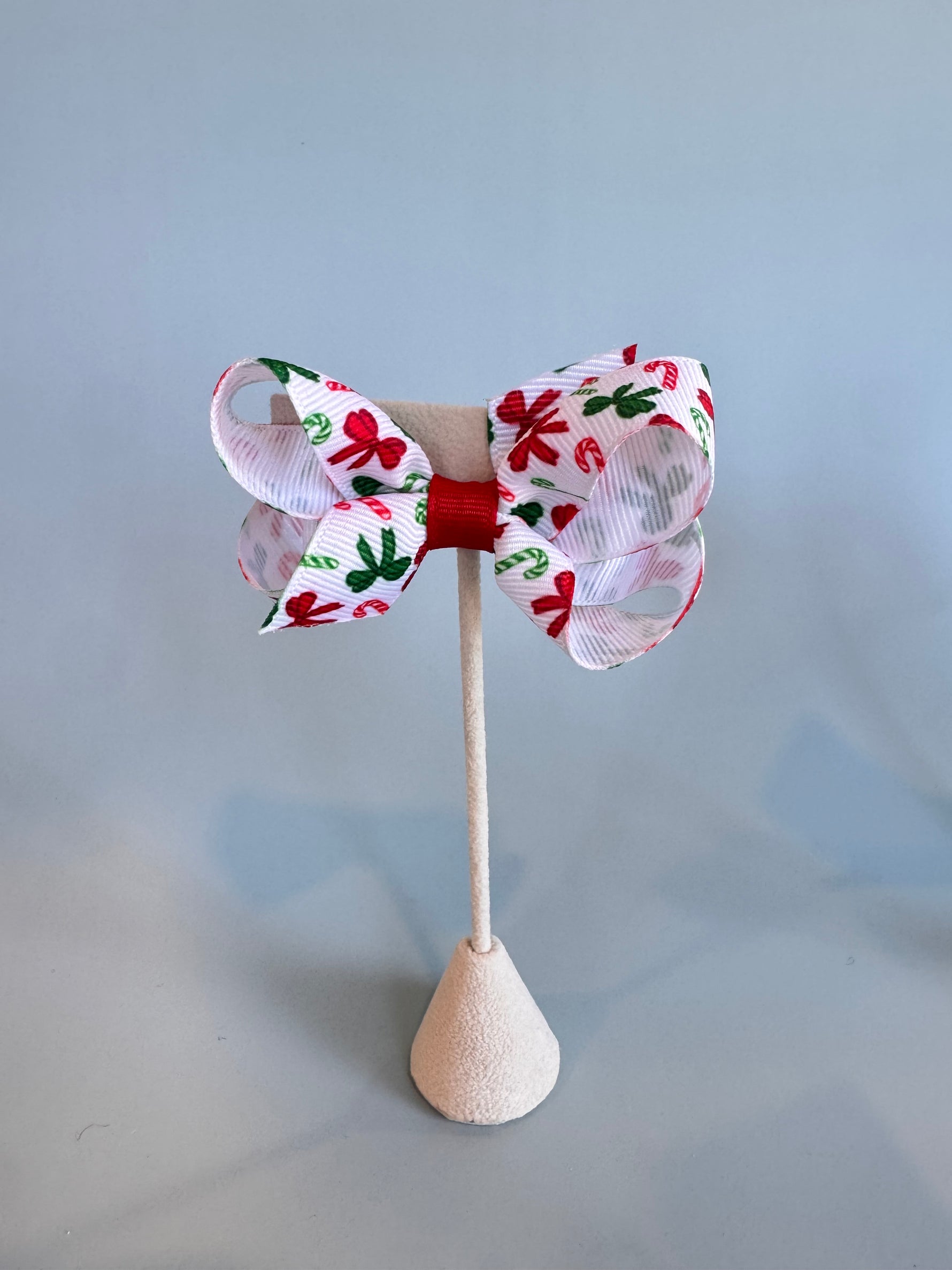 Holiday happiness in a bow. This one makes us all ready to celebrate. This bow is sure to stay in her hair all day with our patented WeeStay™ no-slip hair clip.