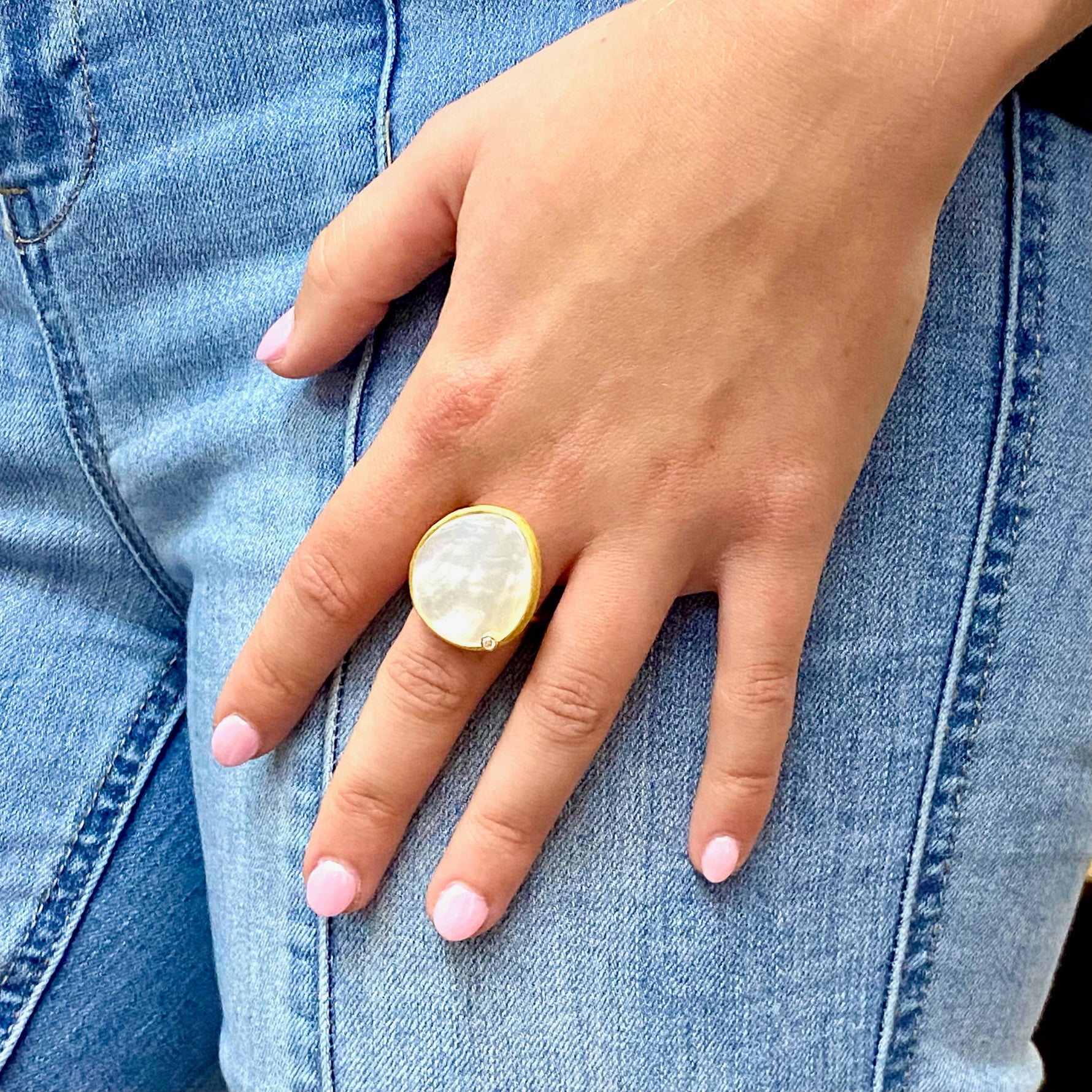 Elyssa Bass RIng Mother of Pearl Teardrop