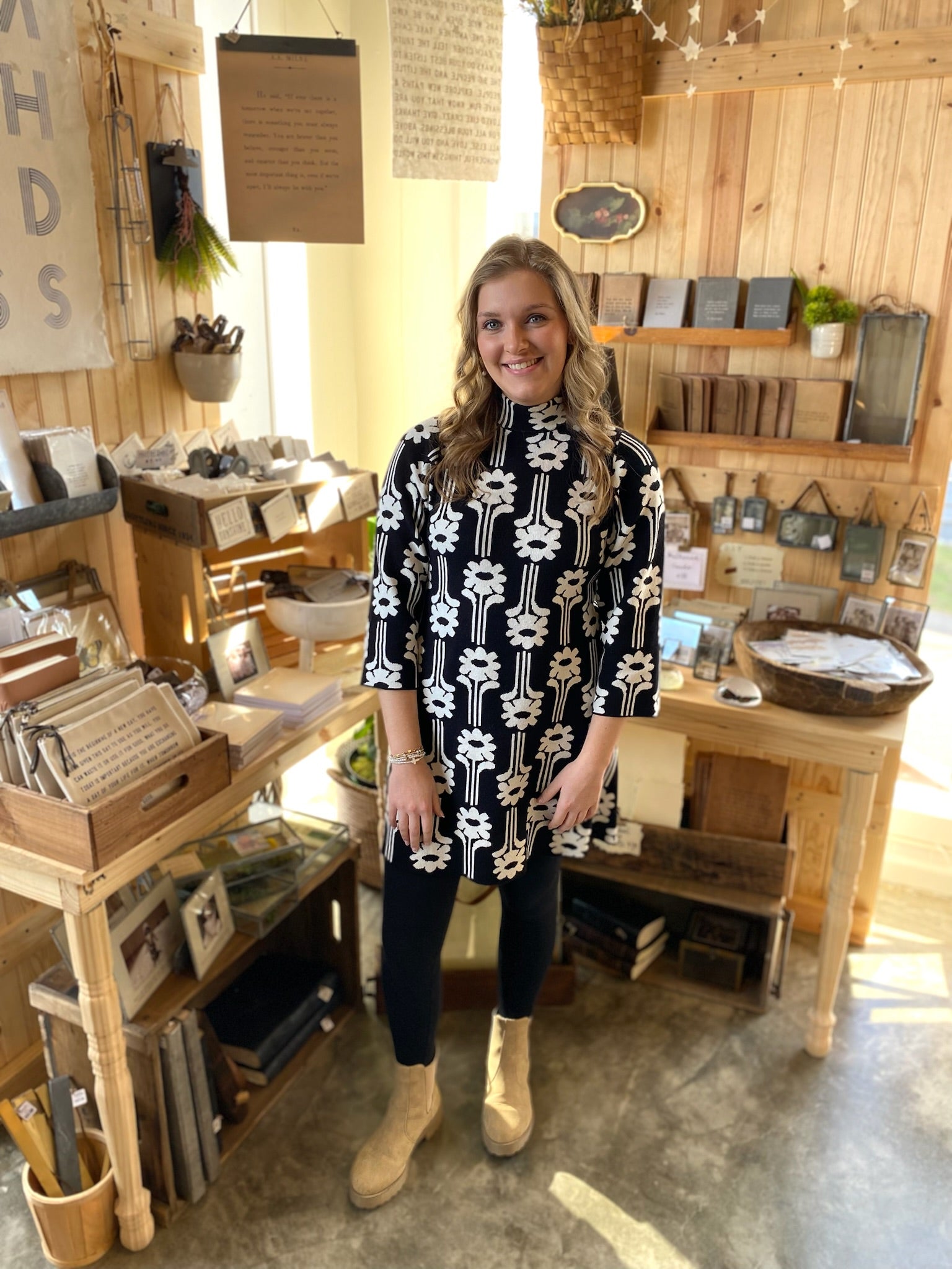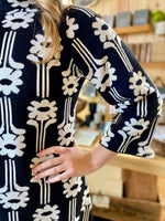 Black and white floral knit dress.