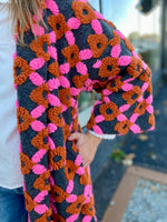 Long sleeve tunic length jacket with real pockets. A beautiful piece to layer with dresses and blouses through our colder months.