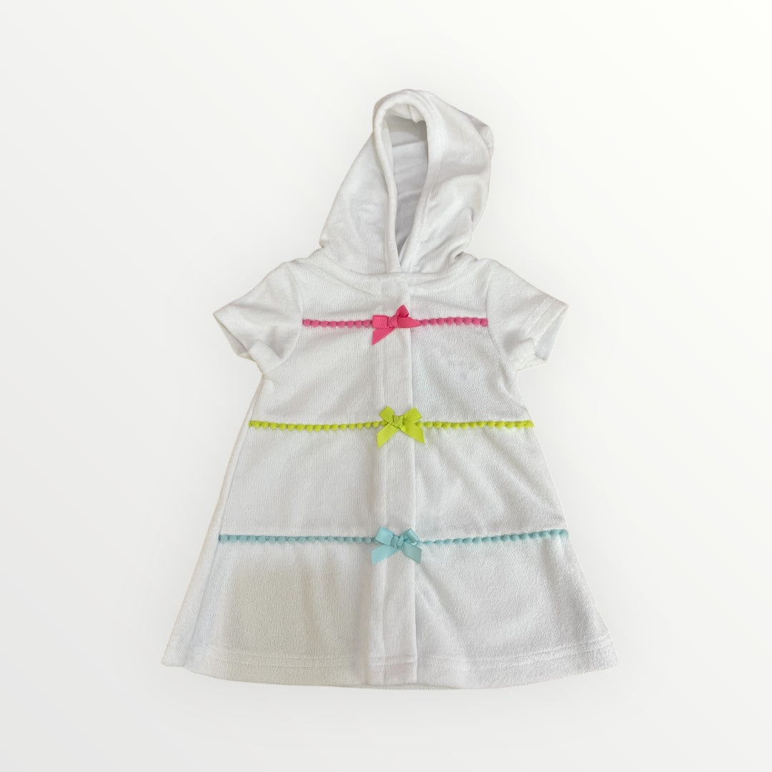 - A baby girls' colorful pom-pom trimmed cover up is perfect for slipping on your beach baby!