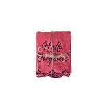 Add a splash of personality to the bathroom with these charming 10-inch square Cotton Bath Towels. The vibrant pink hue and the embroidered sayings make them a delightful addition to any eclectic, farmhouse, or transitional style space. Crafted from pure cotton, they promise both softness and high absorbency. Whether hung on a rack or folded on a shelf, these towels offer a blend of whimsy and practicality, ensuring that every bath feels like a luxurious escape. The generous size of these towels provides ample coverage, perfect for wrapping anyone in after a relaxing bath or shower. Treat anyone to a touch of fun and functionality with these delightful Cotton Bath Towels.