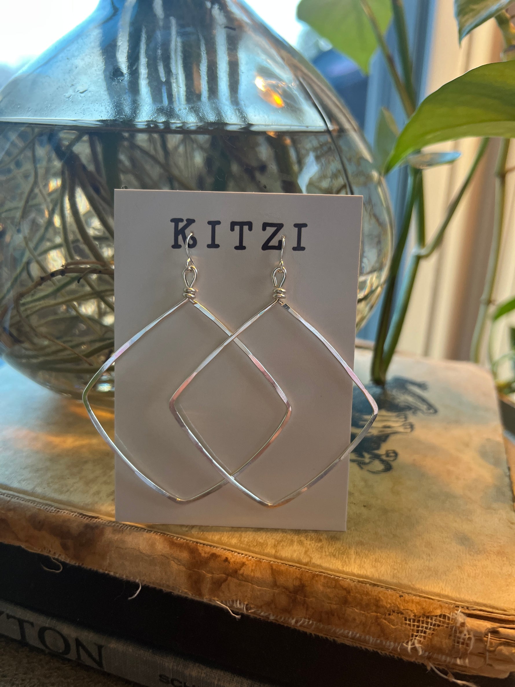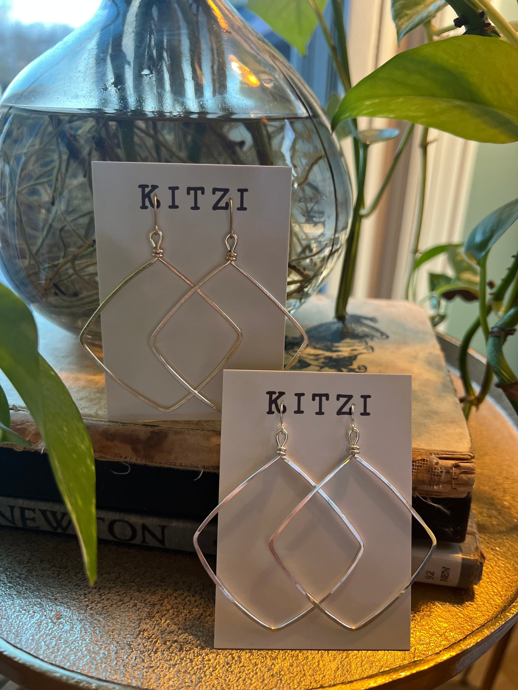 Matte finish in silver or gold. Square dangle earring.