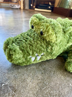 Anthony Alligator is a Flip Flop design; incredibly soft, understuffed and floppy, and totally kid friendly. he’s 12” long with realistic ridges and non-threatening fabric teeth. His relaxed floppy body is idea for cuddling. Care for by washing in cold water on gentle cycle, air dry; soft toy made to strict quality standards to meet or exceed US Safety requirements.