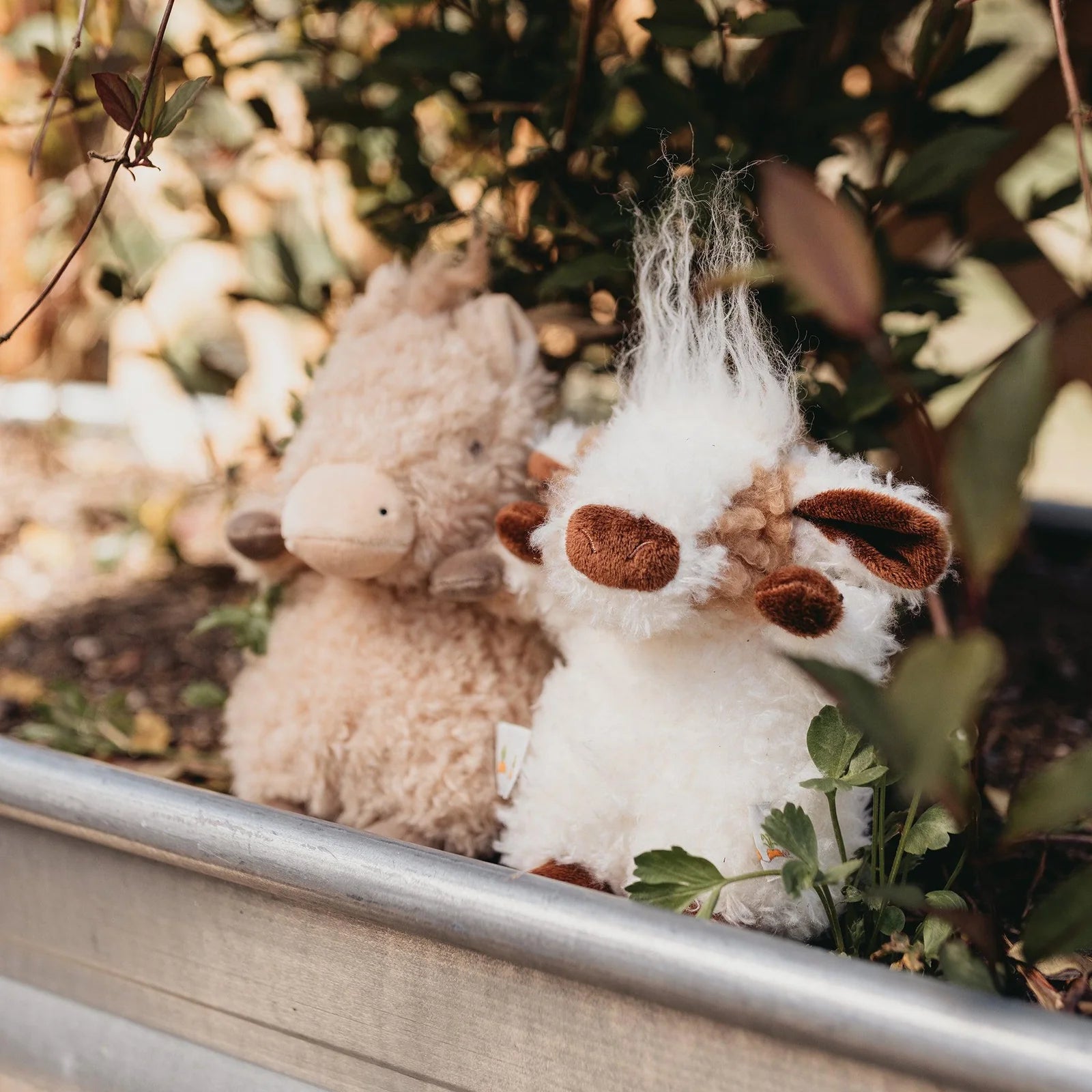 A favorite in the Good Friends Farm collection. Wee Moo Moo is BIG charm in a petite package that is perfect size for little hands to hug and hold. With cream and mocha brown shaggy fur and soft velour features, this is utterly the cutest cow on the wee farm!