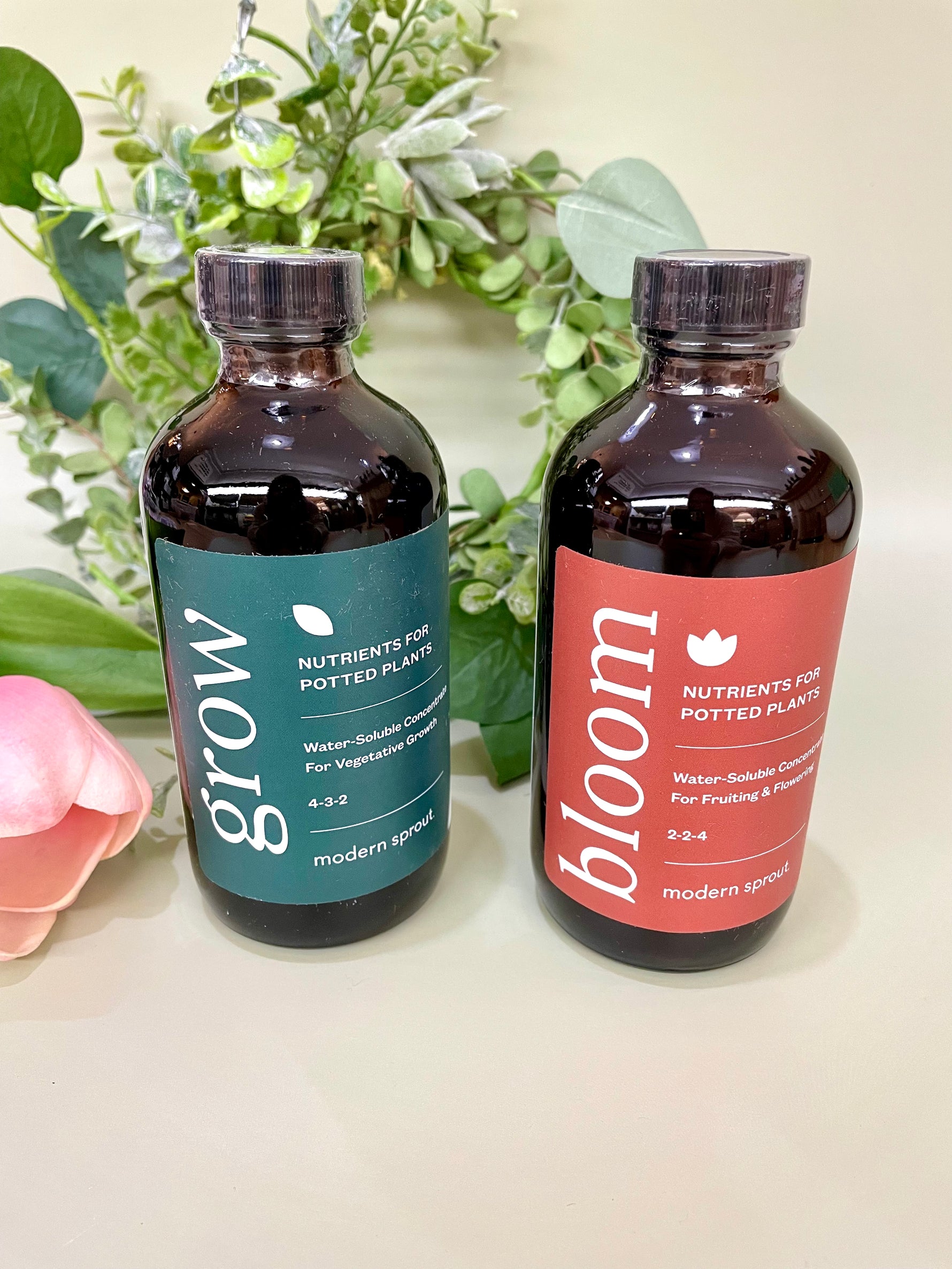 Water-soluble nutrient concentrate is optimally blended to support healthy plant growth. Formulated to pair with soil and soilless media with options for vegetative, fruiting and flowering potted plants.