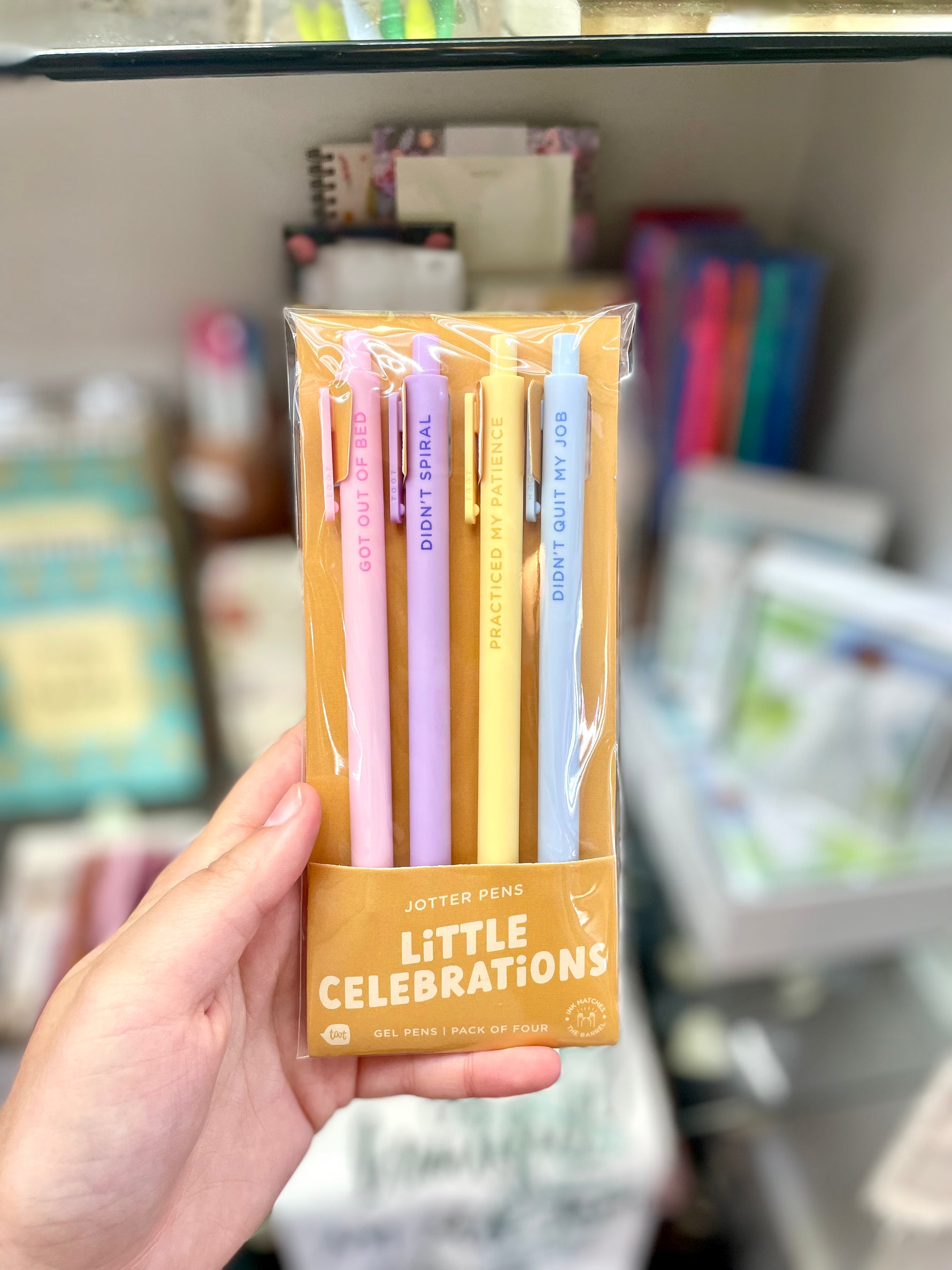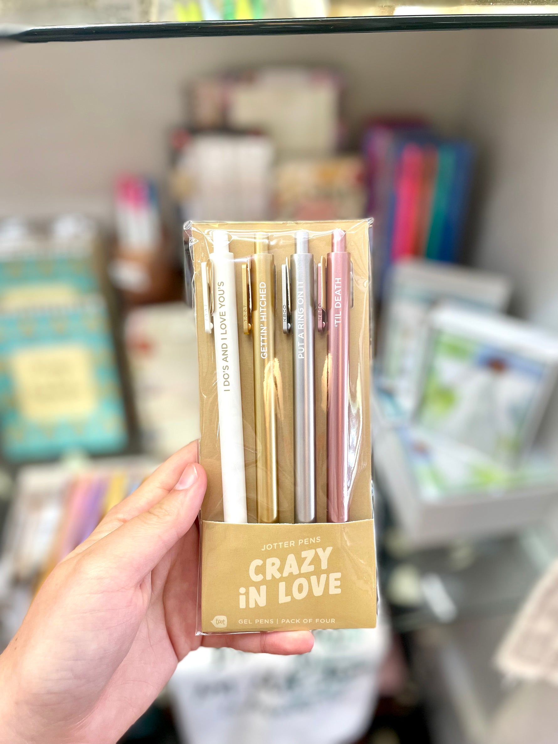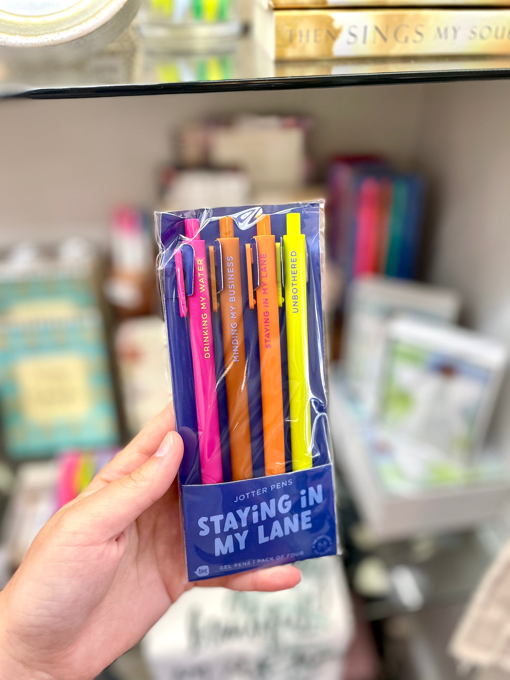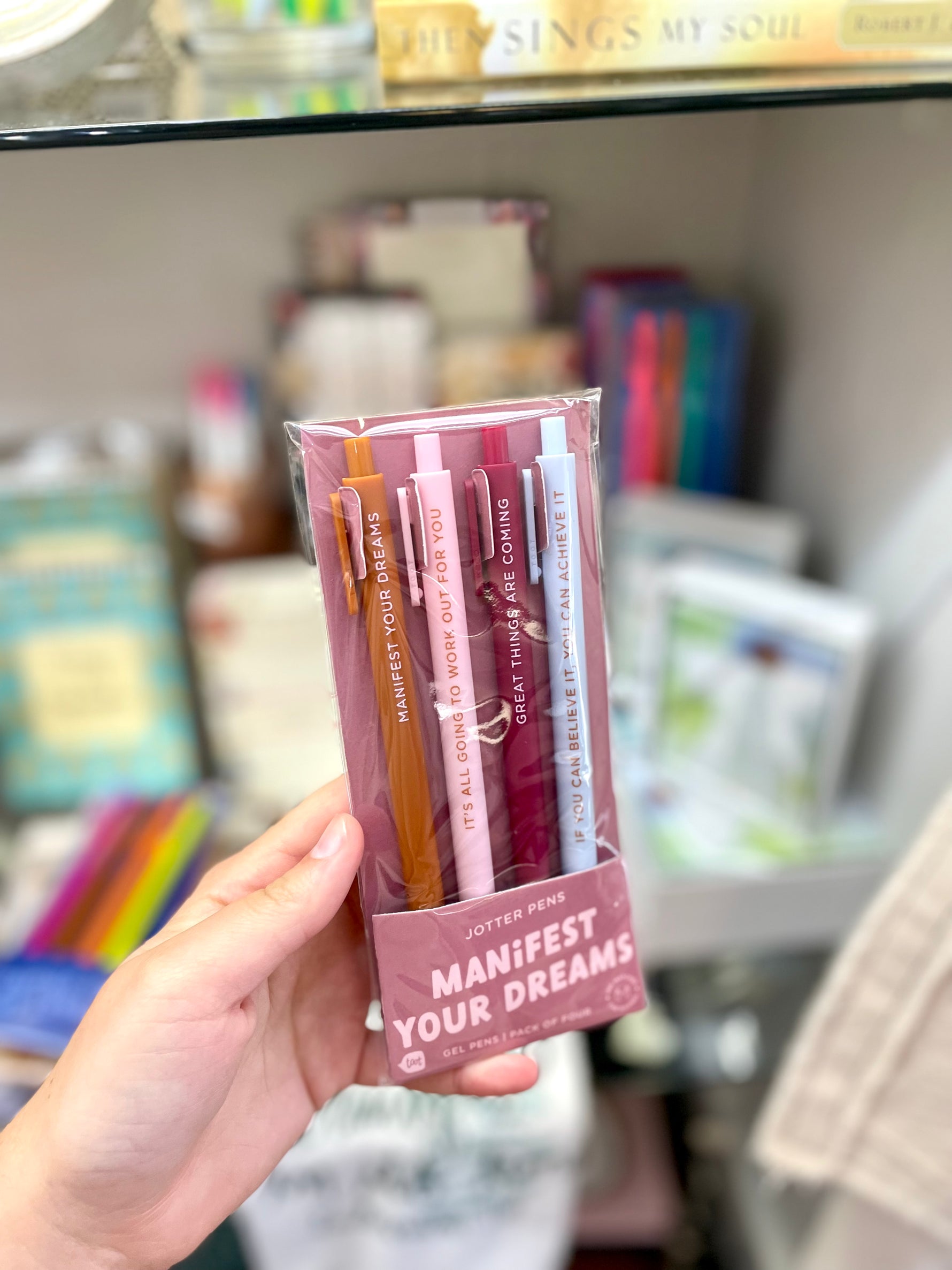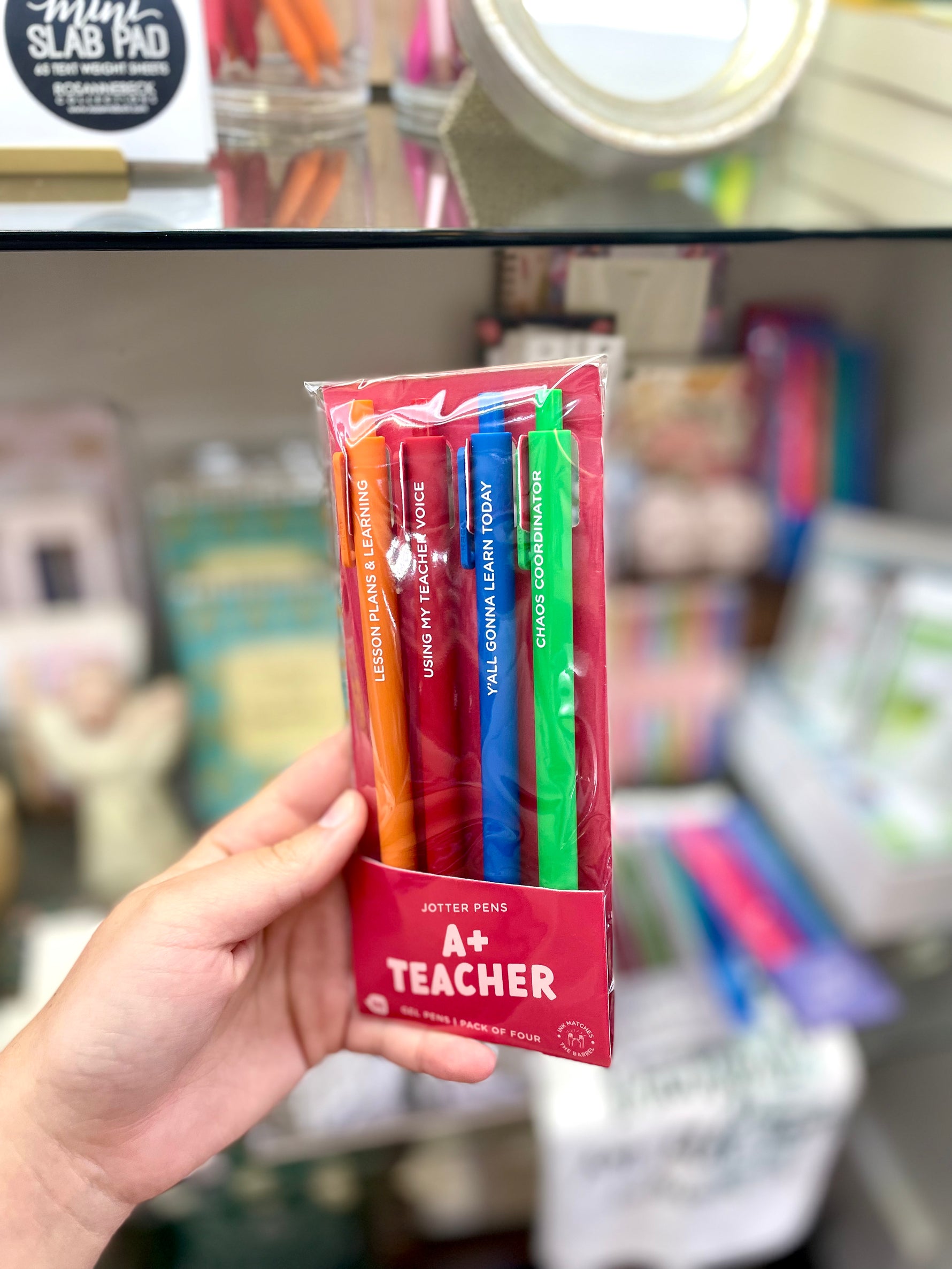 Our 4 packs of Jotter Pen Sets are all themed sets. Super fun sayings and the perfect color mixes. The soft-touch barrel surface and fine-point gel ink that matches the barrel will make these pens your new favorite. Did we mention these pens are TIKTOK famous?! Yep, that's WRITE! (please note the navy, grey, white, and metallic pens write in black ink).