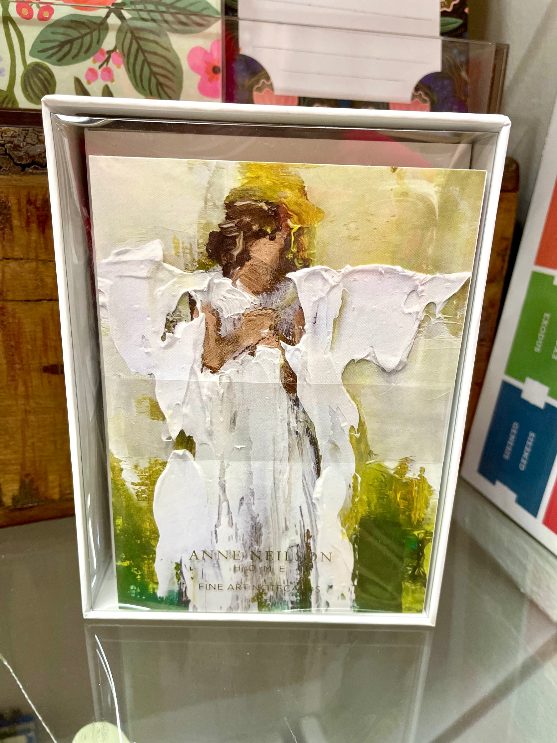 Everyone loves a handwritten note and our beautiful fine art notecards are a blank canvas for your words. Whether you are sending a note of congratulations, encouragement or sympathy, our notecards share your thoughts with beauty and flair. Our Be Still Notecards feature the same angel throughout each pack and they also include a beautiful coordinating lined envelope. There are a total of 14 notecards and envelopes included in each pack. Notecards are a 3.75 x 5.25 inch fold over card, blank inside.
