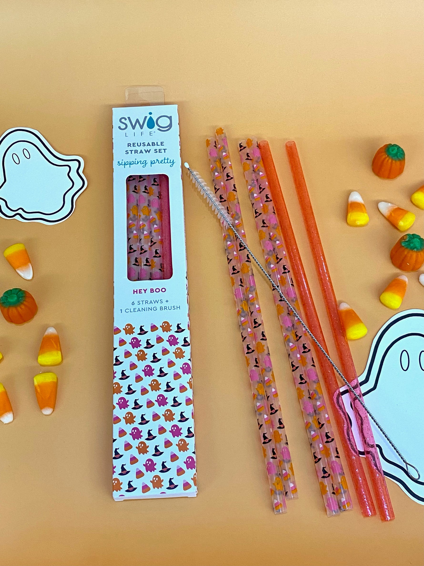 Swig Straw Set Hey Boo+Pink Glitter
