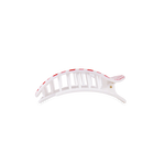 Lay flat and relax with the new TELETIES Candy Cane Crush Small Flat Round Hair Clip in Red and White Stripes. This hair clip is designed to allow you to lay back flat, do yoga, or sit comfortably in a seat with a headrest, and it is made with the same material that is nearly unbreakable.