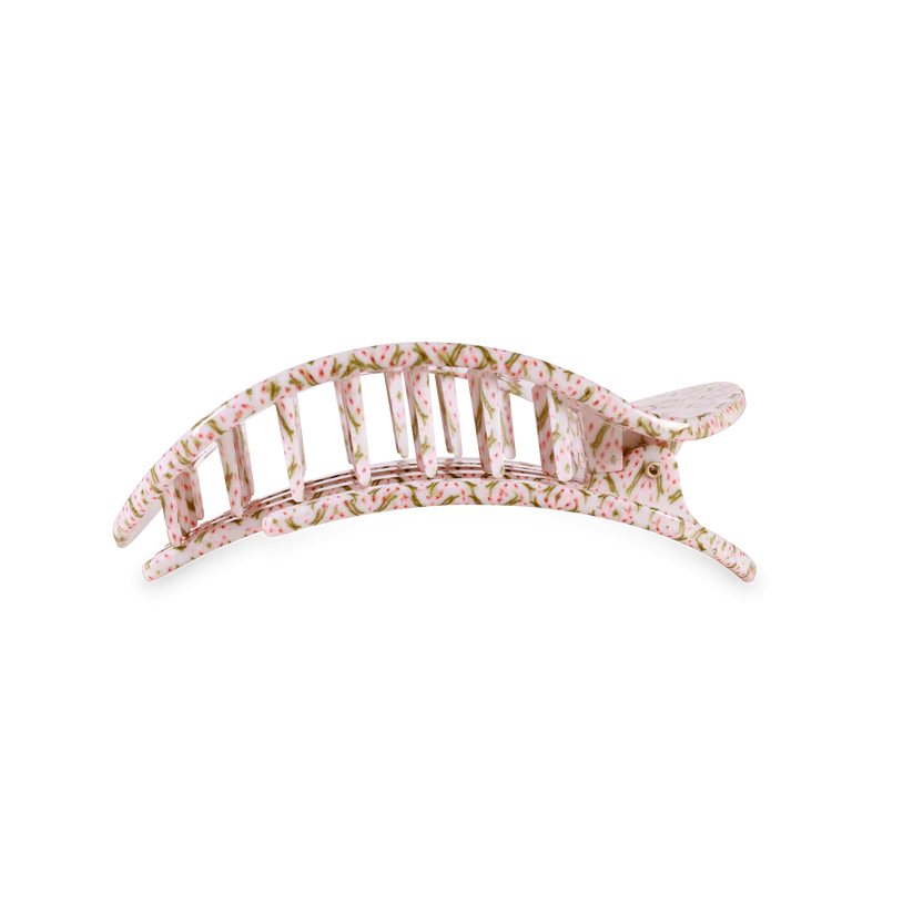 Lay flat and relax with the Pine & Pearl Flat Round Hair Clip in White and Pink. The TELETIES x Laura Park Holiday Collaboration features bold, playful designs that combine Laura’s vibrant art with TELETIES signature function—perfect for any look!