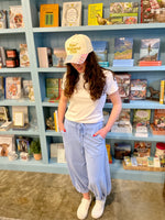 Acid washed french terry capri length bubble pants.