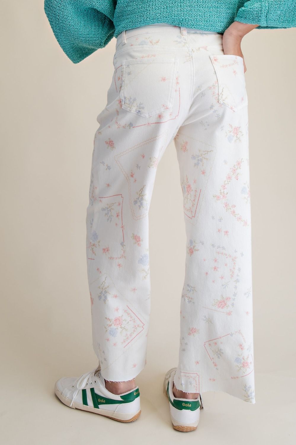 CROSS STITCH PATTERN PRINTED WASHED TWILL PANTS