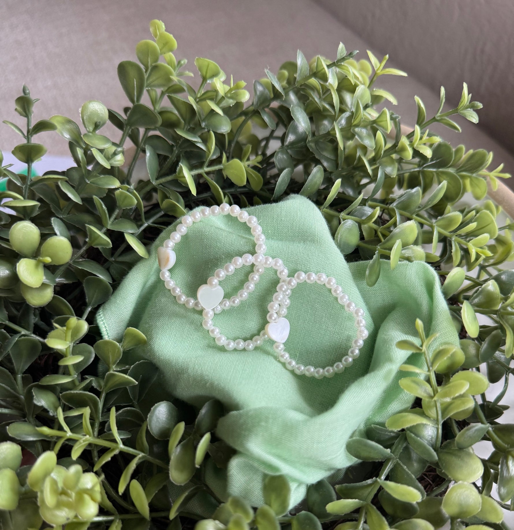 Stretchy bracelet for little girls, baby - toddler with pearl beads and a white heart.
