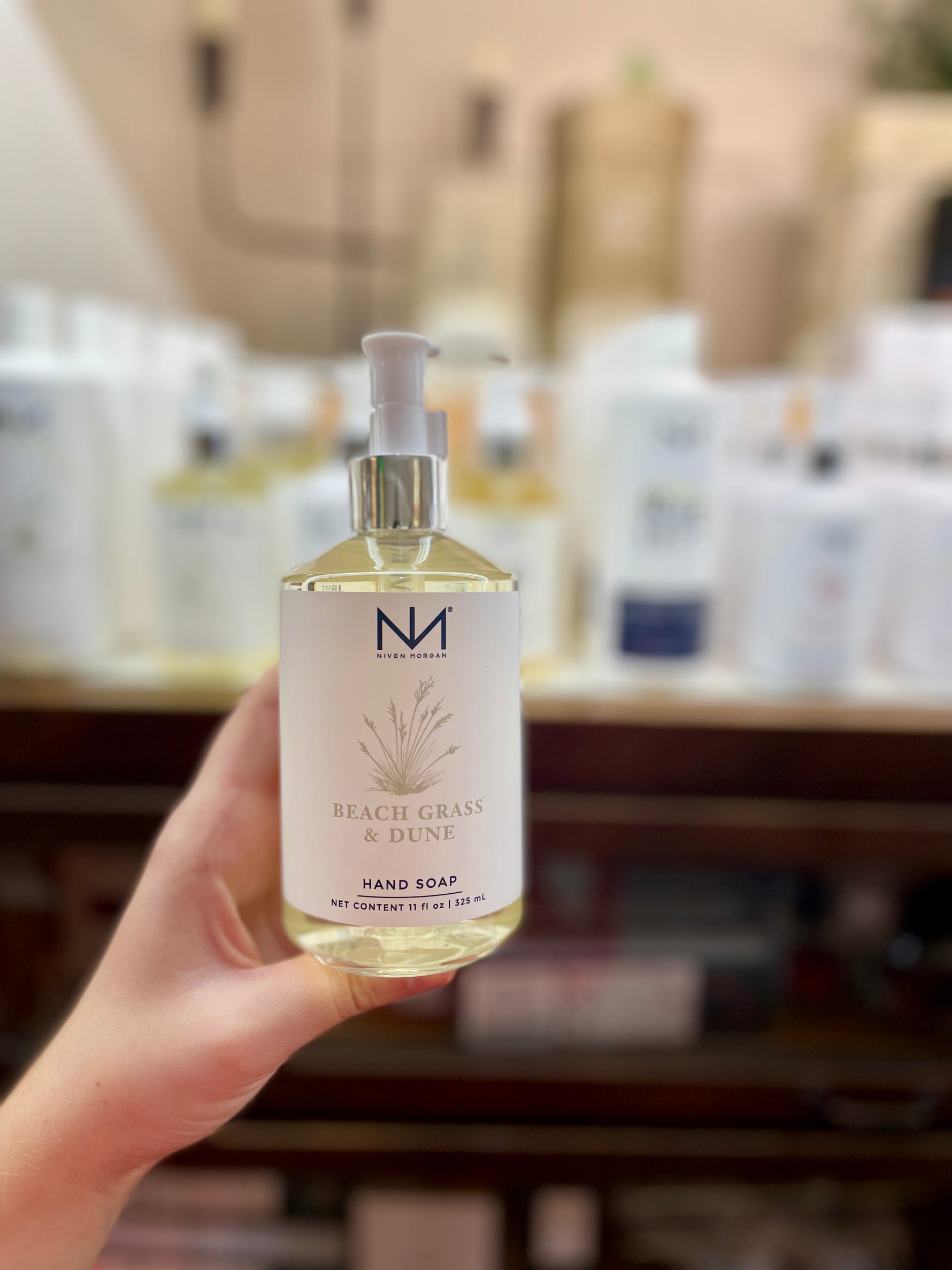 Salt-kissed ocean air drifts over dunes and swaying beach grass in this seaside-inspired scent. Blooming ylang-ylang mixes with warm notes of amber and mimosa buds, evoking endless sandy summer days. Niven Morgan's aloe vera and glycerin hand soap is vitamin enriched and non-drying . Get your hands wet and suds up. 11 fl oz | Cruelty-Free, Paraben free, Sulfate free | Made in Texas
